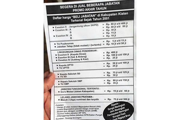 TRANSFORMASINEWS.COM, JAKARTA. KOMISI Aparatur Sipil Negara (KASN) menemukan indikasi praktik jual beli jabatan terjadi di 11 daerah. Namun, Ketua KASN Sofian Effendi tidak memerinci daerah-daerah tersebut.