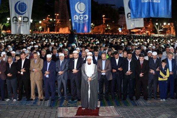 TRANSFORMASINEWS.COM, TURKI. Masyarakat Turki menggelar sholat fajr (subuh) berjamaah di depan Aya Sofya (Hagia Sophia, bahasa Arab: آيا صوفيا), Istanbul, dalam rangka memperingati 563 tahun pembebasan konstantinopel oleh yang mulia Sultan Mehmet II (Muhammad II) yang kemudian dikenal sebagai Sultan Muhammad “Al Fatih” (Sang Penakluk).