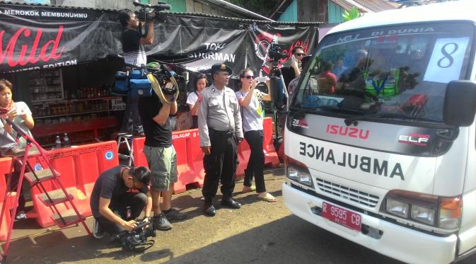 Setiap ambulans diberi nomor pada sudut kiri kaca depan mobil. Iringan ambulans satu per satu masuk ke dermaga. Ambulans bernomor 9 terlihat masuk paling pertama.