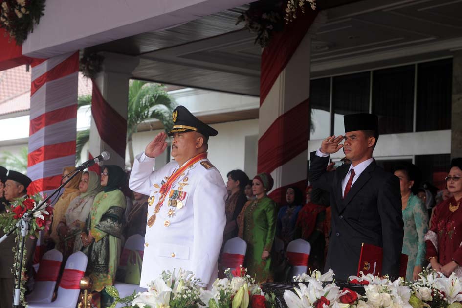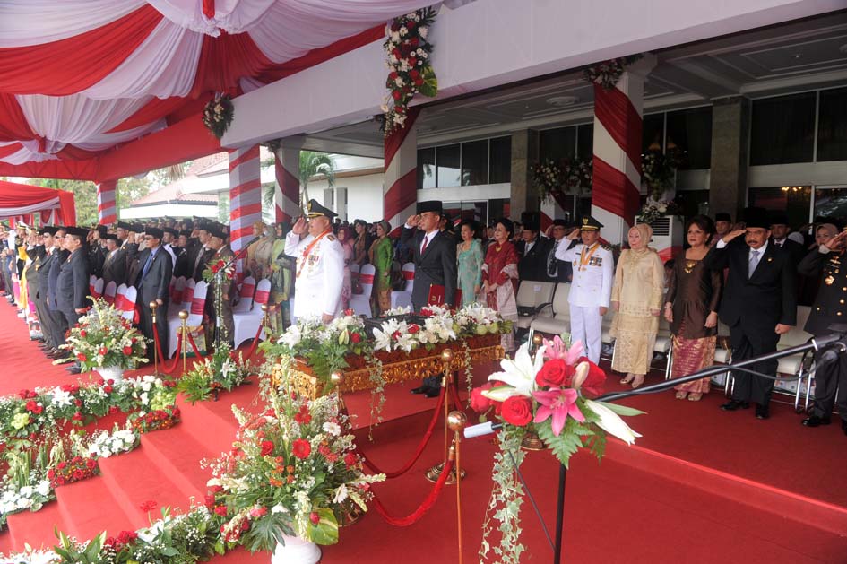 TransformasiNews, Sumsel – Gubernur Sumsel, H Alex Noerdin mengajak seluruh masyarakat untuk mengisi kemerdekaan dengan memperjuangkan cita – cita kemerdekaan seperti yang diperjuangkan para pendahulu. “Kemerdekaan diraih dengan perjuangan para pendahulu, dan sekarang para generasi penerus bertanggung jawab mengisi kemerdekaan itu, berbuat untuk meraih apa yang dicita citakan, yakni kesejahteraan rakyat Indonesia,”ucap Gubernur Sumsel, Alex Noerdin usai menjadi Inspektur Upacara pada Hut Kemerdekaan RI ke 69 di Griya Agung Palembang, (17/8). Lanjutnya, momentum kemerdekaan adalah momentum untuk masyarakat Indonesia terkhusus Sumsel untuk semakin bersatu, dan apa yang sudah terjadi biarkan terjadi, dan lalui saja. “Semoga kedepannya pasti lebih baik jika kita semakin bersatu,”tuturnya. Alex menambahkan, sebagai generasi penerus bangsa, ia akan mengisi kemerdekaan dengan terus berupaya melakukan yang terbaik untuk Sumsel dan mensejahterakan Masyarakat Sumsel. “ Mari bersama-sama melalui momen ini kita bersatu, apalagi guna untuk menjalankan tugasnya masing-masing. Seperti hal untuk masyarakat Sumsel agar bisa lebih sejahtera lagi kedepannya, tentu kami Pemerintah Provinsi akan melakukan terbaik untuk membanggakan para pendahulu serta ini sebagai bentuk kami merealisasikan perjuangan pahlawan yang lebih dulu berjuang,”tutup Alex. Sementara itu, Farah Zhafira yang membawa replika Bendera Pusaka mengatakan ini kali pertama dimandatkan membawa duplikat bendera pusat Indonesia. “Ya, tentunya saya terharuh dan bangga. Terlebih memang ada sedikit gugup, namun tetap haruslah bisa,”ucapnya. Ia mengatakan apa yang dirinya jalankan tentu semuanya telah dilewat melalyu berbagai tahapan seleksi dan semua sudah ketentuan. “Setelah apa yang dilakukan dalam melewati berbagai seleksi. Tak lain semua saya persembahkan bagi tanah air, bangsa Negara dan tentunya juga bagi orang tua. Artinya ini memang telah sewajarnya selaku generasi penerus bangsa guna berkewajiban dalam mengisi kemerdekaan,”terangnya. Upacara Hut kemerdekaan RI ke 69 tersebut berlangsung Khidmat, Alex Noerdin Gubernur Sumsel memimpin jalannya upacara yang dimulai pukul 09.00 Wib tersebut, tampak hadir dalam upacara tersebut Kepala SKPD dilingkungan Pemprov Sumsel, Para petinggi TNI dan Polri serta Siswa Siswa Sekolah. (Rilis)