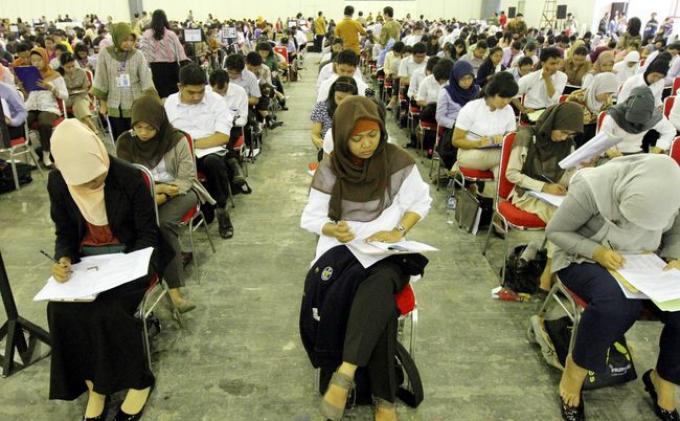 ILUSTRASI: Peserta tes Calon Pegawai Negeri Sipil (CPNS) Kementerian Luar Negeri (Kemenlu) mengerjakan soal di Jakarta International Expo (Ji Expo) Kemayoran, Jakarta Pusat, Beberapa waktu lalu. fOTO:TRIBUNNEWS/HERUDIN