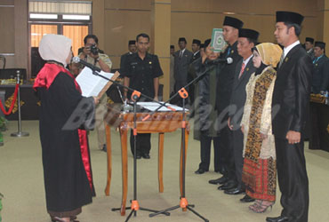 Pengambilan sumpah jabatan pimpinan dewan dipandu oleh Ketua PN Baturaja Mimi Haryani.