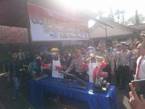 TRANSFORMASINEWS.COM, MUARA ENIM. Jajaran Polres Muaraenim memusnahkan barang bukti hasil operasi cipta kondisi selama Juni 2017 di halaman Mapolres Muaraenim, Senin (19/6/2017) pagi.