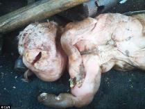 “Bayi kambing ini sudah mati ketika dilahirkan, kami hanya ingin menyingkirkan secepat mungkin, karena itu kami menguburkannya dalam sebuah lubang di tanah” ucap Olga. “Dan kelainan hewan itu merupakan mutasi genetik yang disebabkan oleh penggunaan pestisida.”