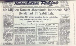 Surat Kabar Kedaulatan Rakyat edisi 8 November 1945 menampilkan headline dengan judul “60 Miljoen Kaoem Moeslimin Indonesia Siap Berjihad Fi Sabilillah. Perang didjalan Allah oentoek menentang tiap-tiap pendjadjahan”.