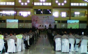 PALEMBANG – Kapolda Sumsel Irjen Pol Saud Usman Nasution memerintahkan kepada seluruh jajaran Polda Sumsel untuk siap melakukan pengamanan PSU yang akan dilaksanakan pada 4 September 2013 mendatang dalam arahannya terhadap petugas pengamanan TPS di gedung Sriwijaya Promotion Center (SPC) Palembang, Jumat (30/8/2013).