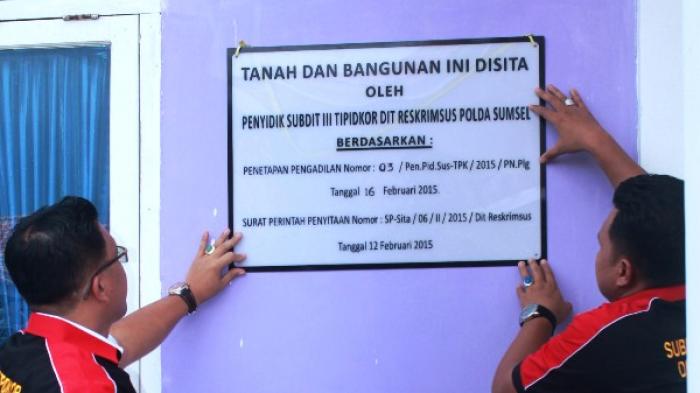 Penyitaan yang dilakukan terhadap rumah cukup mewah yang dilakukan penyidik Tipikor Polda Sumsel, dengan tujuan untuk upaya menganti kerugian negara Rp 1,4 miliar.