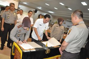 TRANSFORMASINEWS.COM, PALEMBANG. MUSRENBANG- Disaksikan Kapolda Sumsel Irjen Pol Drs Agung Budi Maryoto, Lima Bupati dan Walikota (Palembang, Ogan Ilir, Prabumulih, Muba, tandatangani kerjasama pembangunan Digital Scurity System dengan Polda Sumsel, penandatanganan ini dilakukan pada acara Musrenbang Polda Sumsel 2017 di gedung Rekonfu Polda Sumsel, Senin (12/6) pagi.Penandatangan dengan Walikota Prabumulih foto diatas. ALL-Foto Ferdinand Deffryansyah/koransn