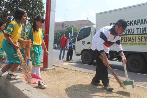Operasi semut yang digelar serentak oleh seluruh masyarakat, TNI/POLRI dan seluruh siswa yang berjumlah lebih dari 10 ribu orang tersebut berhasil mengumpulkan sampah lebih dari 10 truk yang terdiri dari sampah ringan dan berat.