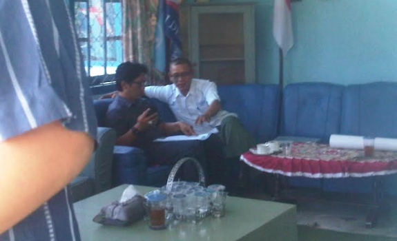 Oknum PNS yang memegang jabatan di Bagian Humas Pemkab OKU ini terlihat mendatangi kantor partai berlambang mercy itu seorang diri.