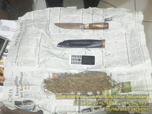 Penangkapan berawal saat kapolsek mendapat Informasi, jika akan ada transaksi Narkotika jenis Ganja di sebuah pondok pinggir Jalan di Desa Kartamulia Kecamatan Gelumbang.