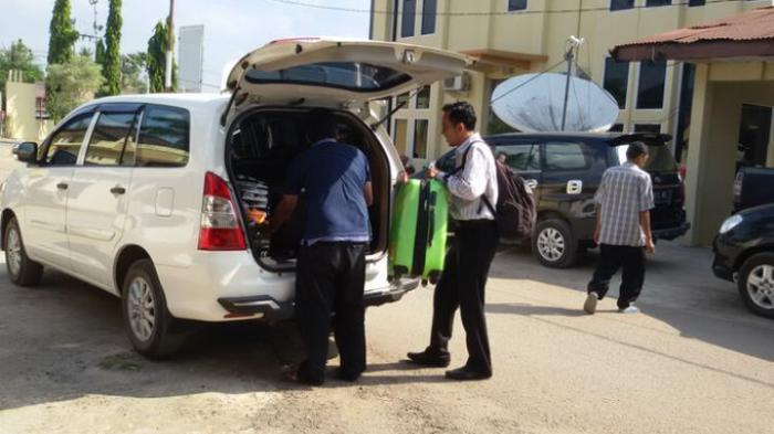 Selang berapa lama tujuh orang penyidik KPK, keluar dari aula Polres Muba dengan membawa beberapa buah koper berwarna biru dan hijau yang ukurannya cukup besar. Dan langsung menuju tiga unit mobil minibus Toyota Inova yang berwarna putih dan hitam untuk meletakkan koper yang diduga berisi berkas-berkas pemeriksaan.