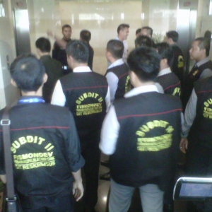 TRANSFORMASINEWS,PALEMBANG-Jajaran Ditreskrimsus Polda Unit II melakukan penggeledahan di lantai 12 ruang Bank Sumsel Babel Palembang, Kamis 25 September 2014. Penggeledahan ini, diduga mengambil beberapa dokumen dari BSB untuk melengkapi berkas perkara dugaan kasus lahan di PT Campang Tiga. Pantauan di lapangan, ada puluhan personil dari Ditreskrimsus Polda Sumsel yang datang dengan menggunakan rompi hitam, serta membawa box putih besar.(RMOL)
