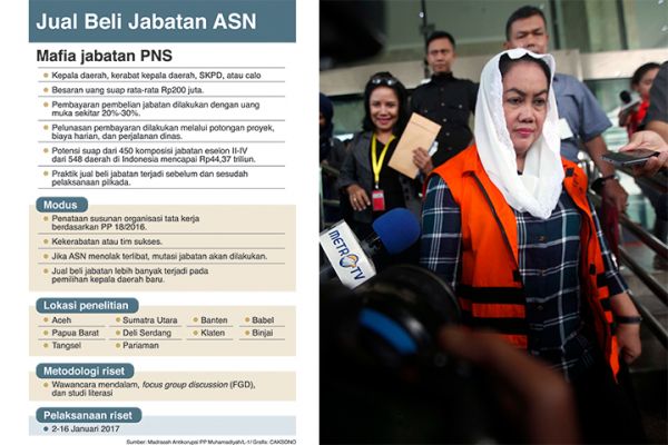 Tren korupsi kepala daerah juga bergeser, yakni tidak lagi menjadikan APBD sebagai lahan korupsi, tetapi dengan mencari rente dari jual beli jabatan. Rente jual beli jabatan dinilai lebih aman dan besar ketimbang korupsi APBD yang harus melalui banyak pihak.