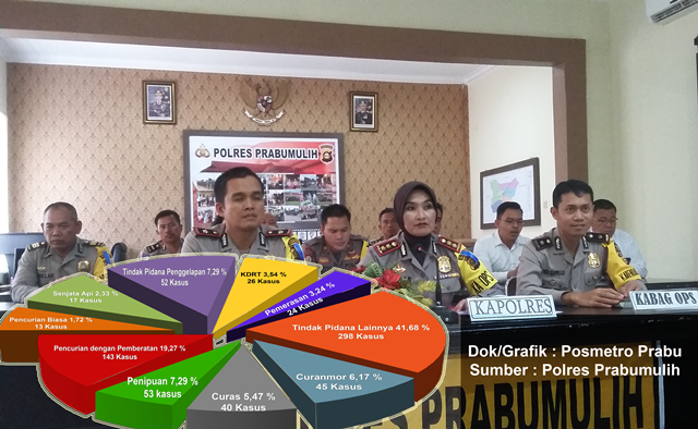 Kapolres menuturkan, dari sekian banyak kasus yang ditangani jajarannya, kasus pencurian dengan pemberatan (curat) yang masih mendominasi. Dengan jumlah perkara sebanyak 143 dan baru 57 atau sekitar 40 persen kasus diselesaikan.