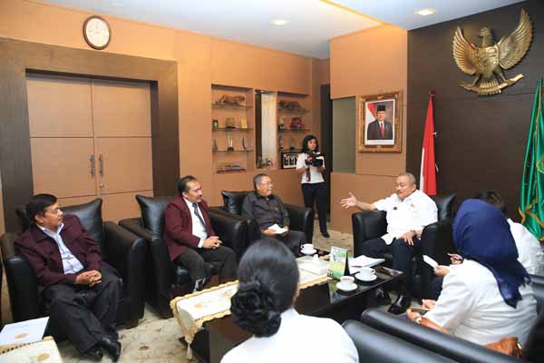 Audiensi Ketua Persatuan Perawat Nasional Indonesia Sumsel Dr. H. A. Djauhari MM dengan Gubernur Sumsel H. Alex Noerdin di ruang tamu Kantor Gubernur. Rabu (1/10) .