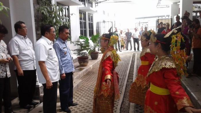Wakil gubernur berserta rombongan disambut dengan tarian mapak setelah tiba di rumah Dinas Bupati Empatlawang, Selasa (31/05/2016). Monitoring ini membahas persoalan dan kendala yang terjadi di kabupaten Empatlawang mengenai infrastruktur warga menuju akses ke pertanian.