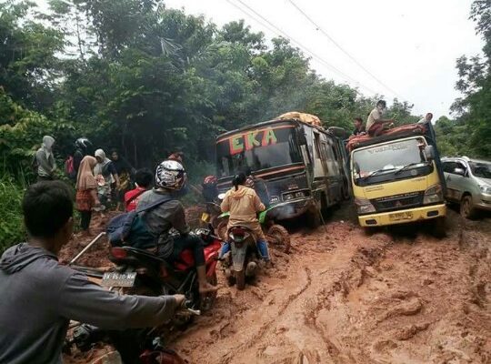 Dengan adanya jalan yang rusak parah ini maka aktifitas masyarakat jadi sangat sulit karena diakibatkan berlumpur.