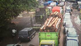 ilustrasi truck angkut kayu melintas jalan raya/NET